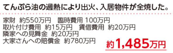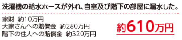 賃貸住宅で発生する事故の例や保険金のお支払例などを紹介いたします。