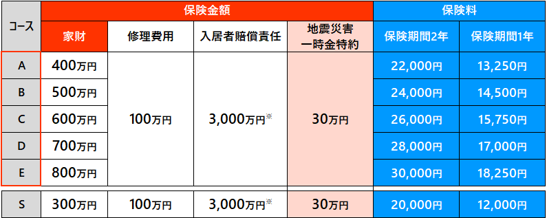 家財保有額基準表を参考にコースをご選択ください。
