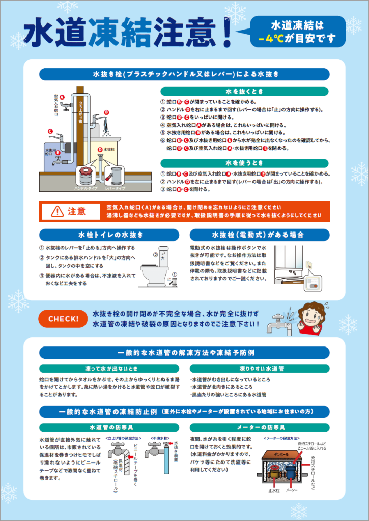・水道管凍結防止 水抜きチラシ(両面印刷のうえお使いください)